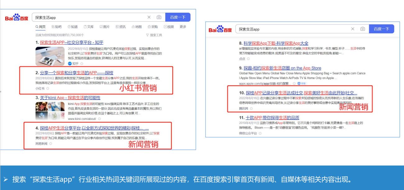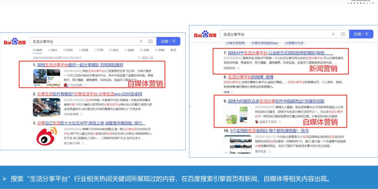 業務詞搜索營銷結果展示—生活分享平臺