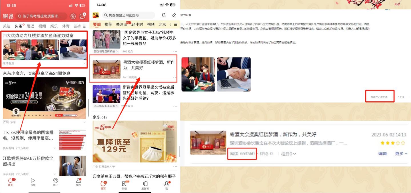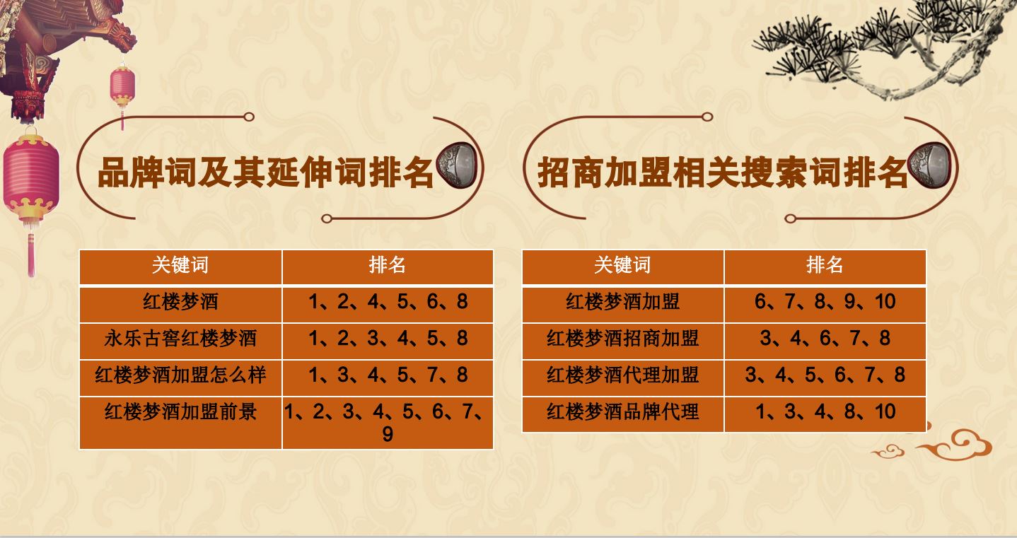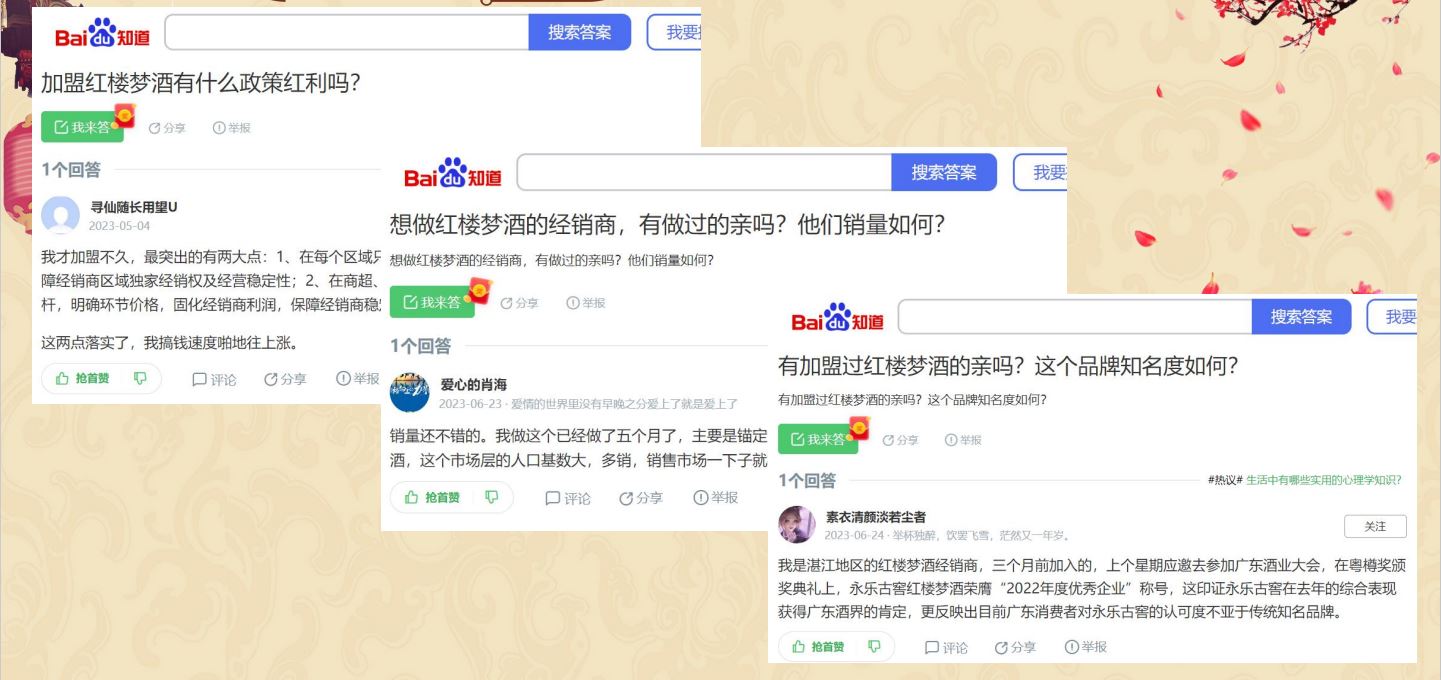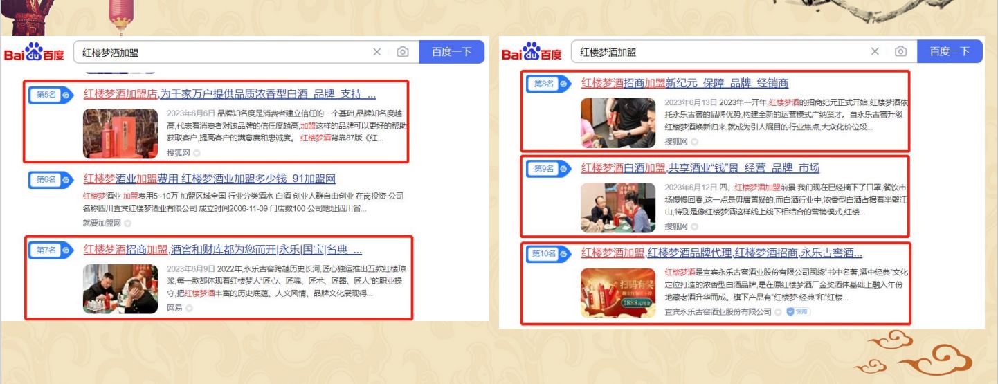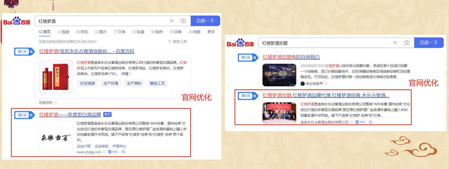 通過百科的方式增加用戶對紅樓夢酒品牌的信任程度,同時提升紅樓夢酒品牌的權威度;通過知乎問答、權威新聞、視頻展現對”紅樓夢酒“品牌詞進行搜索首頁搶位曝光。有效提升品牌的口碑和品牌形象。